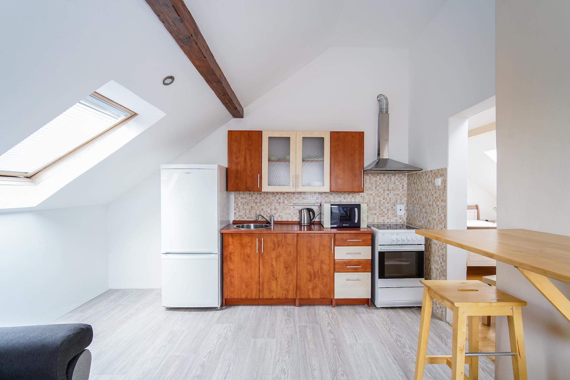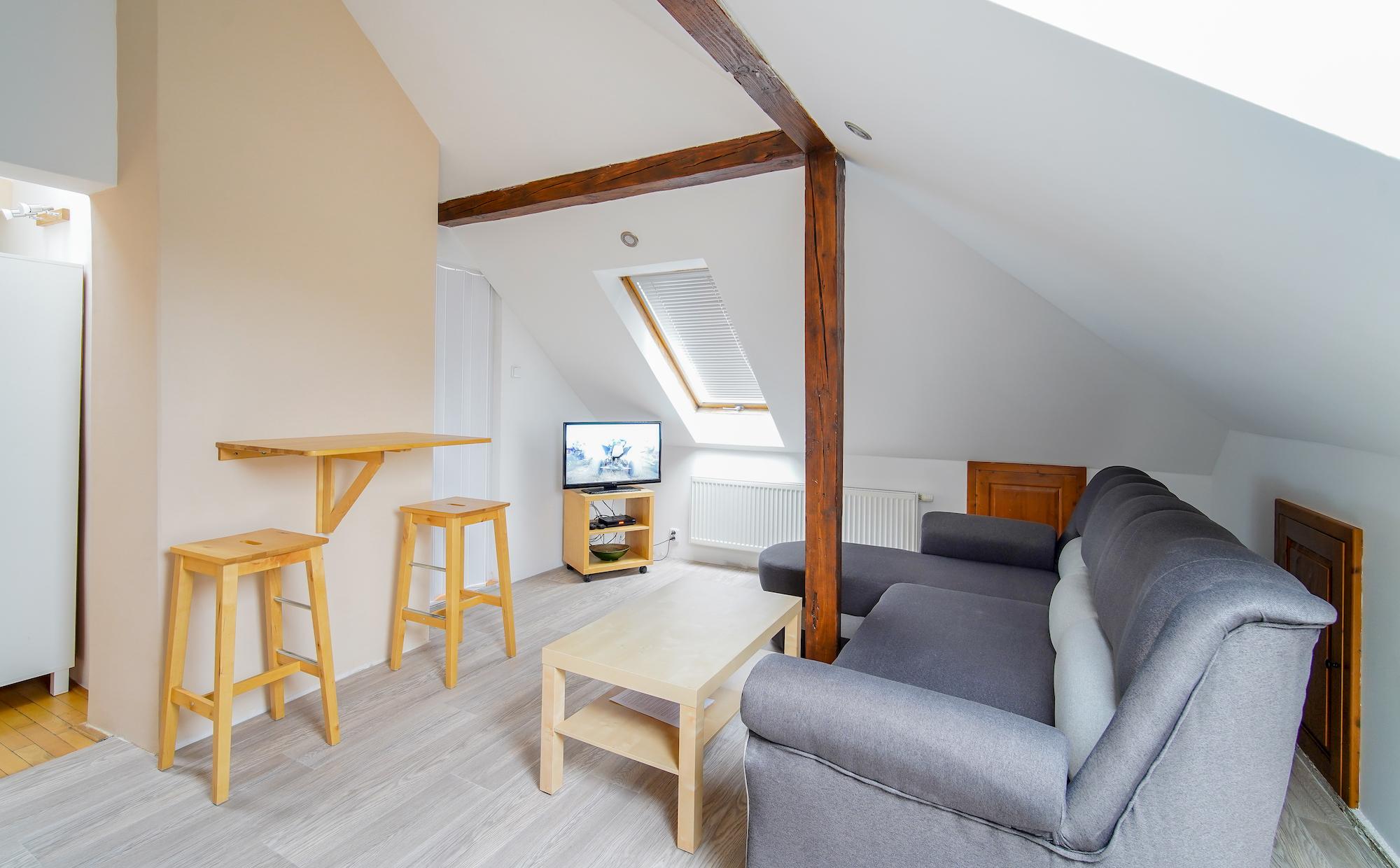 Útulný podkrovní apartmán se šikmými stropy a romantickou atmosférou.